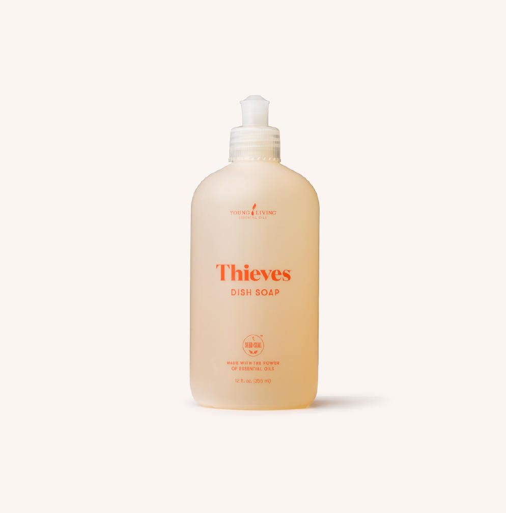 Say hello to dishes that shine and hands that stay happy—Thieves® Dish Soap is tough on grease, gentle on everything else.